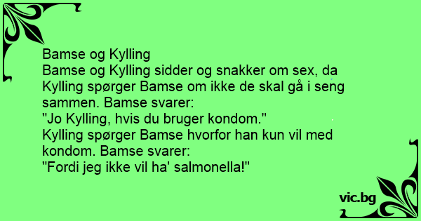 Kylling spørger Bamse hvorfor han kun vil med kondom. Bamse svarer: