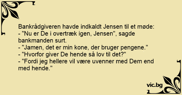- "Nu er De i overtræk igen, Jensen", sagde bankmanden surt.