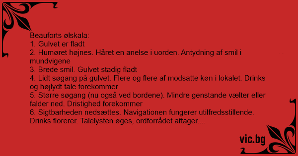 Beauforts ølskala 1. Gulvet...