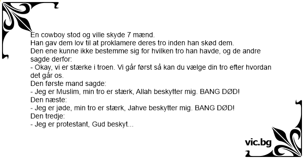 - Jeg er ateist og jeg ved at der kun er 6 skud i en seksløber så jeg er skredet.
