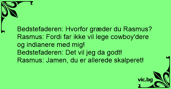Rasmus: Fordi far ikke vil lege cowboy'dere og indianere med mig!