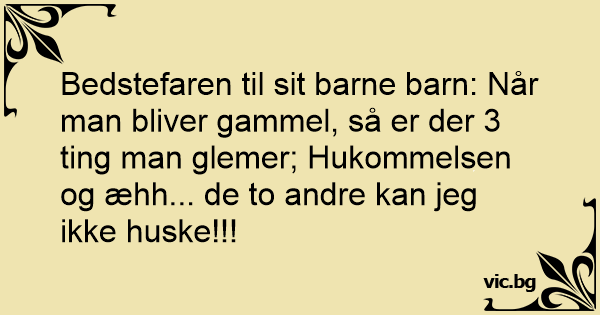 Bedstefaren til sit barne barn: Når man bliver gammel, så er der 3 ting man glemer; Hukommelsen og æhh... de to andre kan jeg ikke huske!!!
