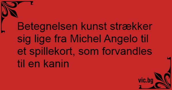 Betegnelsen kunst strækker sig lige fra Michel Angelo til et spillekort, som forvandles til en kanin