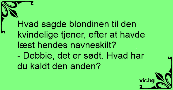 Hvad sagde blondinen til den kvindelige tjener, efter at havde læst hendes navneskilt?