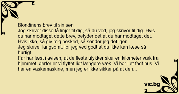 Jeg skriver disse få linjer til dig, så du ved, jeg skriver til dig. Hvis du har modtaget dette brev, betyder det,at du har modtaget det. Hvis ikke, så giv mig besked, så sender jeg det igen.