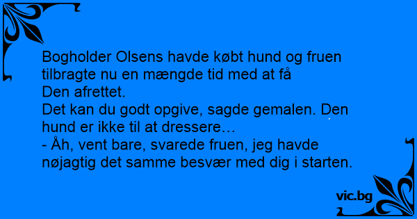 Det kan du godt opgive, sagde gemalen. Den hund er ikke til at dressere…