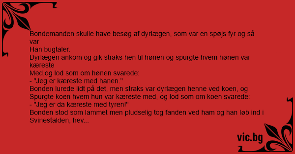 Dyrlægen ankom og gik straks hen til hønen og spurgte hvem hønen var kæreste