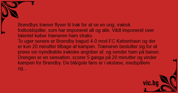 To uger senere er Brøndby bagud 4-0 mod FC København og der er kun 20 minutter tilbage af kampen. Træneren beslutter sig for at prøve sin nyindkøbte irakiske angriber af, og sender ham på banen.