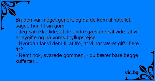Bruden var meget genert, og da de kom til hotellet, sagde hun til sin gom: