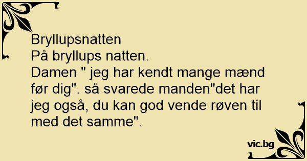 Damen " jeg har kendt mange mænd før dig". så svarede manden"det har jeg også, du kan god vende røven til med det samme".