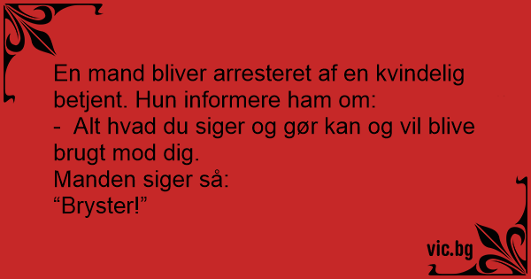A man is being arrested by a female police officer, who informs him, "Anything you say can and will be held against you." The man replies, "Boobs!"