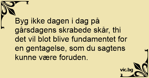 Byg ikke dagen i dag på gårsdagens skrabede skår, thi det vil blot blive fundamentet for en gentagelse, som du sagtens kunne være foruden.