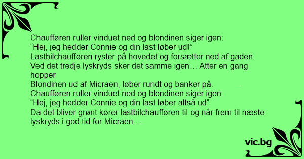 Chaufføren ruller vinduet ned og blondinen siger igen: