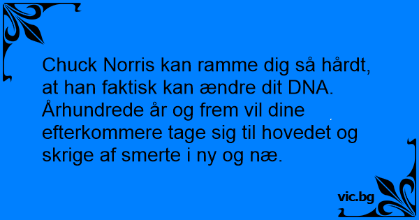 Chuck Norris kan ramme dig så hårdt, at han faktisk kan ændre dit DNA. Århundrede år og frem vil dine efterkommere tage sig til hovedet og skrige af smerte i ny og næ.