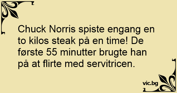 Chuck Norris spiste engang en to kilos steak på en time! De første 55 minutter brugte han på at flirte med servitricen.