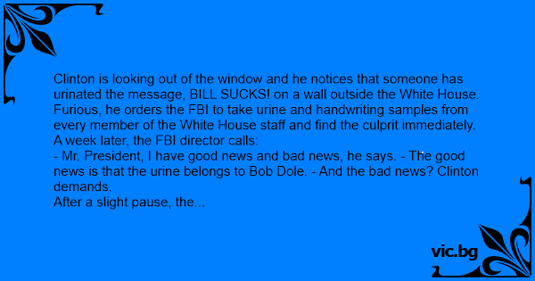 - Mr. President, I have good news and bad news, he says. - The good news is that the urinе belongs to Bob Dole. - And the bad news? Clinton demands.