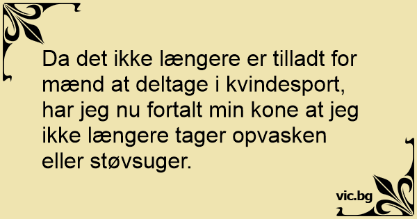 Da det ikke længere er tilladt for mænd at deltage i kvindesport, har jeg nu fortalt min kone at jeg ikke længere tager opvasken eller støvsuger.