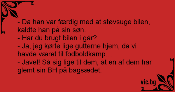 - Javel! Så sig lige til dem, at en af dem har glemt sin BH på bagsædet.
