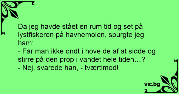 Da jeg havde stået en ruм tid og set på lystfiskeren på havnemolen, spurgte jeg ham: