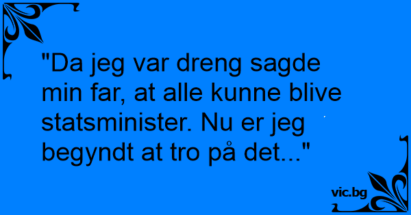 "Da jeg var dreng sagde min far, at alle kunne blive statsminister. Nu er jeg begyndt at tro på det..."