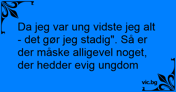 Da jeg var ung vidste jeg alt - det gør jeg stadig". Så er der måske alligevel noget, der hedder evig ungdom