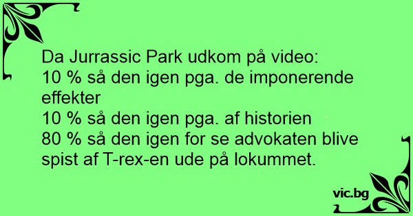 80 % så den igen for se advokaten blive spist af T-rex-en ude på lokummet.