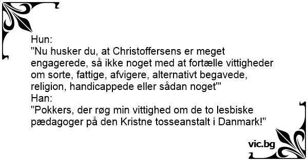 "Pokkers, der røg min vittighed om de to lesbiske pædagoger på den Kristne tosseanstalt i Danmark!"