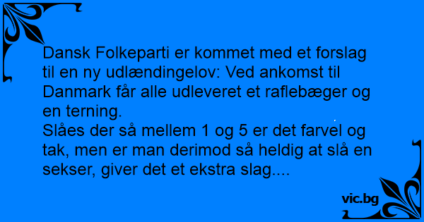 Dansk Folkeparti er kommet med et forslag til en ny udlændingelov: Ved ankomst til Danmark får alle udleveret et raflebæger og en terning.
