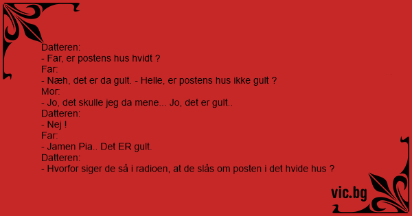 - Næh, det er da gult. - Helle, er postens hus ikke gult ?