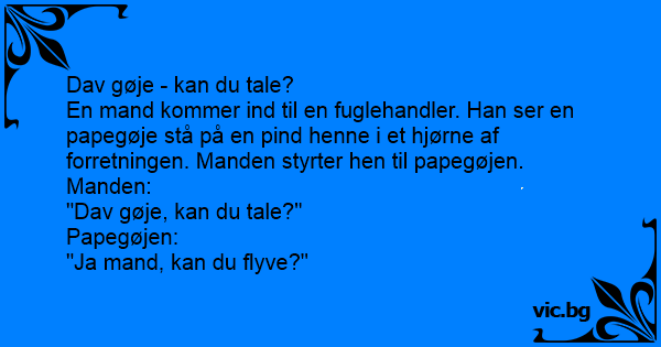 En mand kommer ind til en fuglehandler. Han ser en papegøje stå på en pind henne i et hjørne af forretningen. Manden styrter hen til papegøjen.