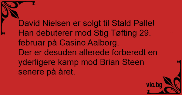 Han debuterer mod Stig Tøfting 29. februar på Casino Aalborg.