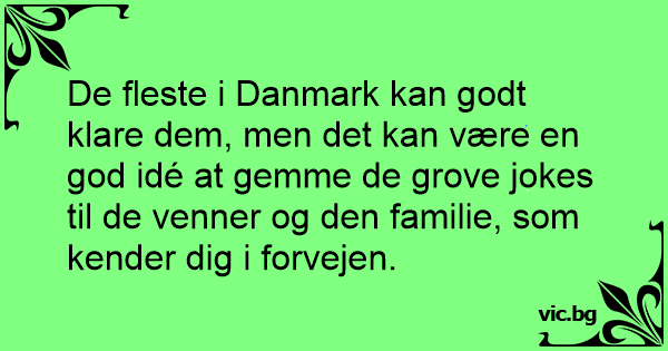 De fleste i Danmark kan godt klare dem, men det kan være en god idé at gemme de grove jokes til de venner og den familie, som kender dig i forvejen.