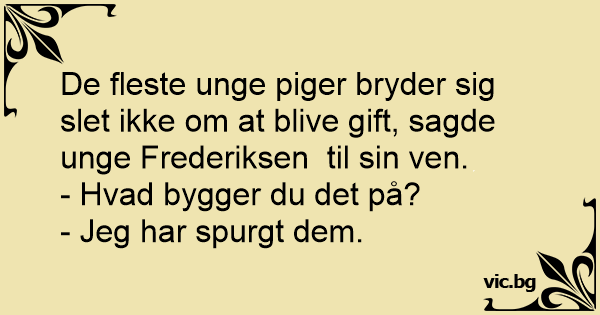 De fleste unge piger bryder sig slет ikke om at blive gift, sagde unge Frederiksen til sin ven.