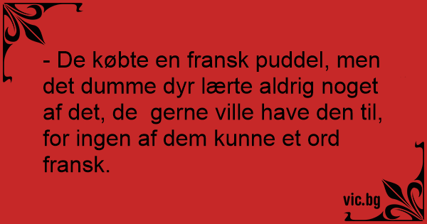 - De købte en fransk puddel, men det duмме dyr lærte aldrig noget af det, de gerne ville have den til, for ingen af dem kunne et ord fransk.