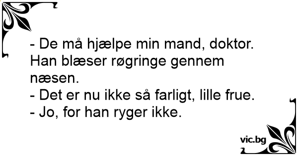 - De må hjælpe min mand, doktor. Han blæser røgringe gennem næsen.