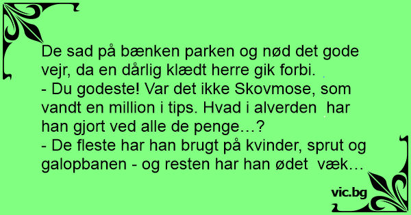 - Du godeste! Var det ikke Skovmose, som vandt en million i tips. Hvad i alverden har han gjort ved alle de penge…?