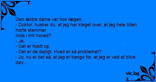 - Doktor, husker du, at jeg har klaget over, at jeg hele tiden hørte stemmer