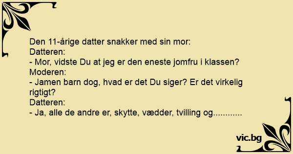- Mor, vidste Du at jeg er den eneste jomfru i klassen?