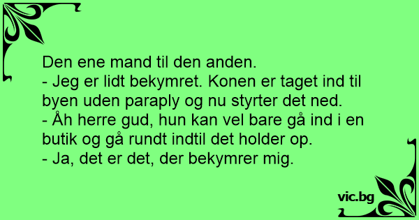 - Jeg er lidt bekymret. Konen er taget ind til byen uden paraply og nu styrter det ned.