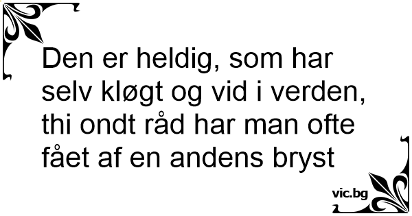 Den er heldig, som har selv kløgt og vid i verden, thi ondt råd har man ofte fået af en andens bryst