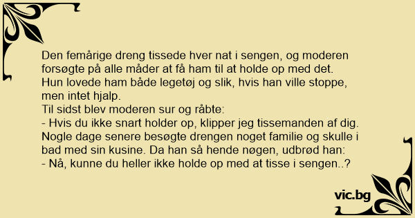 - Nå, kunne du heller ikke holde op med at tisse i sengen..?