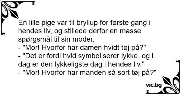 - "Mor! Hvorfor har damen hvidt tøj på?"