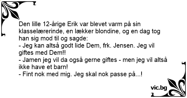 Den lille 12-årige Erik var blevet varm på sin klasselærerinde, en lækker blondine, og en dag tog han sig mod til og sagde: