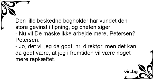 Den lille beskedne bogholder har vundet den store gevinst i tipning, og chefen siger: