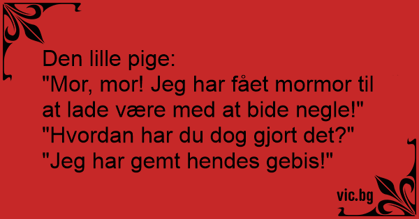 "Mor, mor! Jeg har fået mormor til at lade være med at bide negle!"