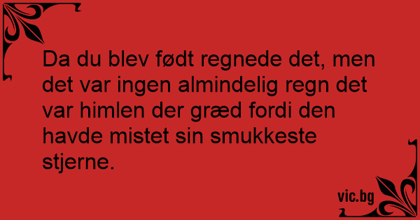 Da du blev født regnede det, men det var ingen almindelig regn det var himlen der græd fordi den havde mistet sin smukkeste stjerne.