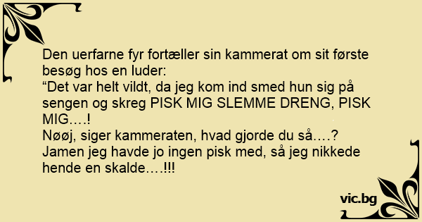Den uerfarne fyr fortæller sin kammerat om sit første besøg hos en luder: