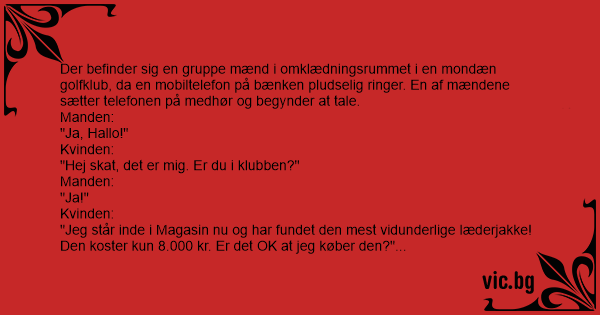 "Jeg står inde i Magasin nu og har fundet den mest vidunderlige læderjakke! Den koster kun 8.000 kr. Er det OK at jeg køber den?"