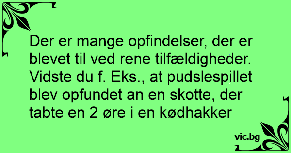 Vidste du f. Eks., at pudslespillet blev opfundet an en skotte, der tabte en 2 øre i en kødhakker