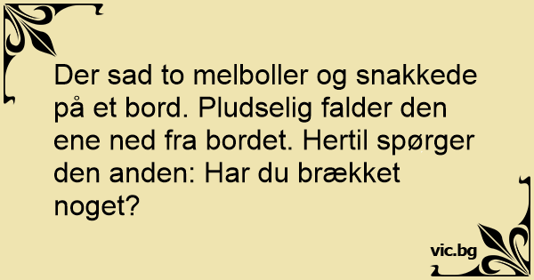 Der sad to melboller og snakkede på et bord. Pludselig falder den ene ned fra bordet. Hertil spørger den anden: Har du brækket noget?